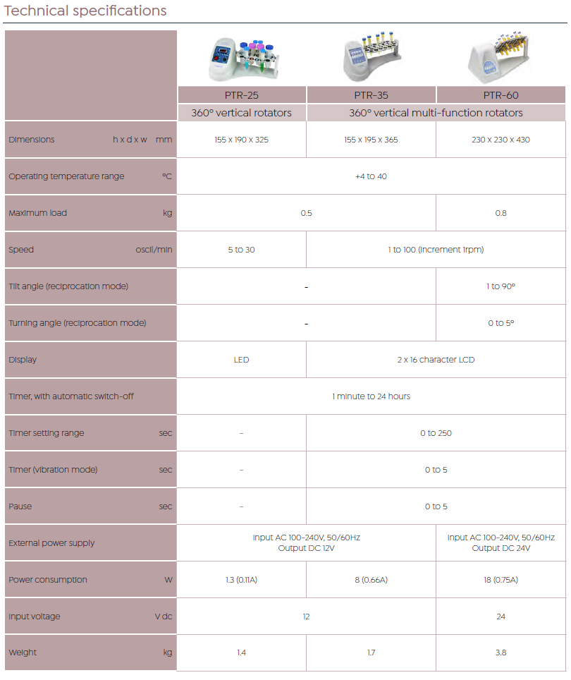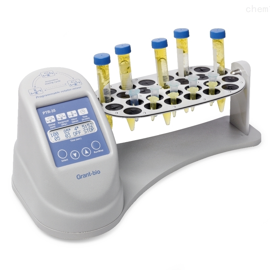 多功能垂直旋转混和器PTR-35是紧凑、可变速、可变旋转角度的垂直旋转混合器可以提供360°垂直旋转、设定角度往复旋转和设定角度微颤功能。所有功能都可以连接或单独进行编程设定,用于试管中样品的充分*混和制备。