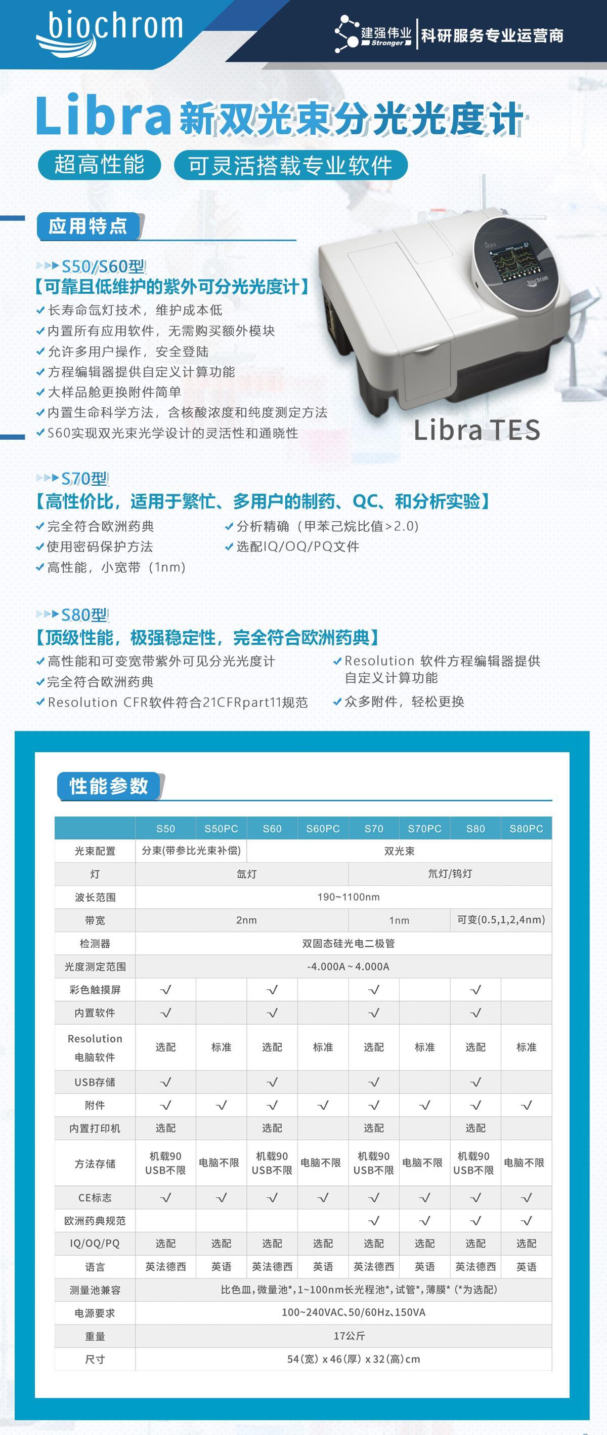 新双光束分光光度计biochrom-Libra S60 S80&S50&S70 超高性能+可灵活搭载专业软件